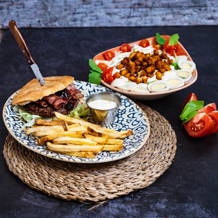 ensaladas frescas, wraps y hamburguesas con personalidad. Un sitio cercano para venir con hambre y